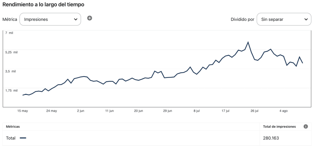 Recuerda que lo recomendable es tener mínimo 10 tableros con 30 pines en cada uno. Cuando esto se cumpla, notarás que tu contenido empezará a obtener más impresiones orgánicas.