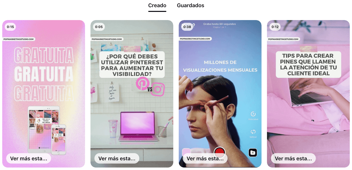 Formato de contenido nativo de Pinterest en el que puedes combinar vídeos e imágenes con la finalidad de inspirar a los usuarios y aumentar el alcance de tu contenido y tu perfil en la plataforma.