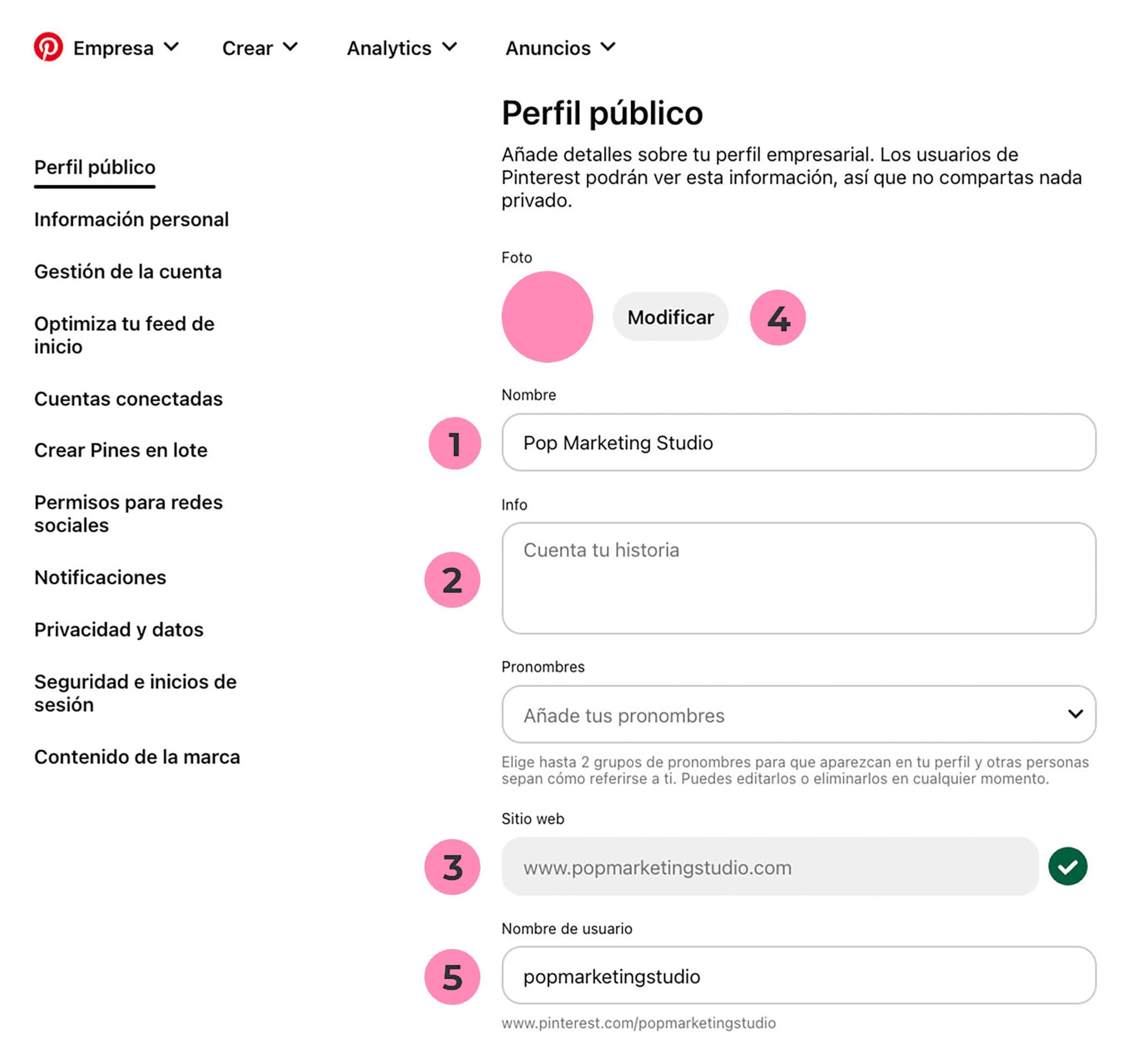 Cómo crear una bio de Pinterest perfecta