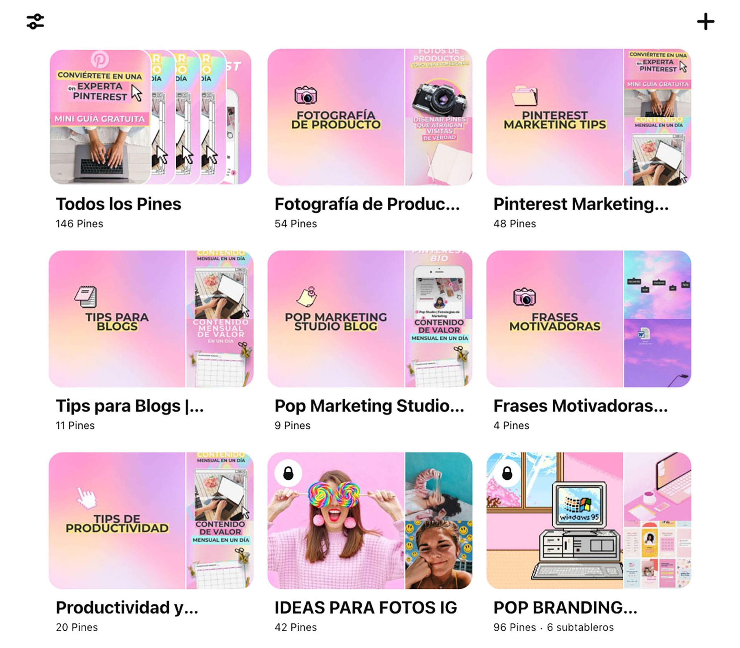 Cuando el perfil es profesional, es muy importante saber cómo utilizar los tableros de Pinterest para que los usuarios nos encuentren. Tenerlos organizados también les permite navegar fácilmente por el perfil y encontrar el contenido que buscan.